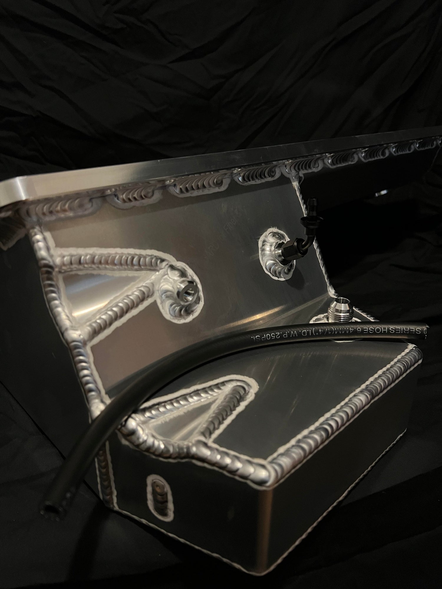 The S54 has a drainpipe that runs from the valve cover to the oil pan on the exhaust side and a corrugated pipe from the intake plenum to the oil pan on the intake side. This option will add a -6an male fitting on the exhaust side to accommodate the drain. Includes the necessary adapter to make the OEM hose plug and play. This option will also add a -4an male fitting to the intake side of the pan and include a push lock fitting and vibrant performance rubber hose to adapt the factory crankcase vent system.
